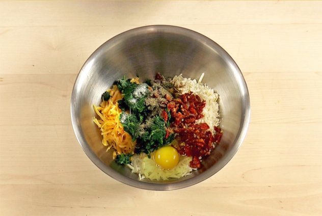 Heat 2 TBS of water in a deep pan or pot. Wash spinach and add to the pan. Saute until tender, about 5 minutes. Let cool.