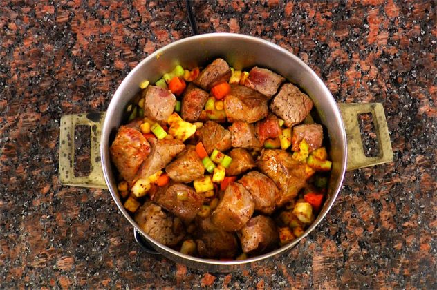 After the first rain comes, and the wind swirls the fallen leaves and makes it clear that she is here to stay at least until spring, I find myself returning to one of the dishes that always warm my heart, and my belly. Although as a child I did not agree to eat foods that contained more than one ingredient…I did have a few exceptions. Beef stew was one of them. The scent that enveloped me when I first came home from school made my taste buds dance, and I’d immediately sit at the table. I didn’t even have to check the pots. “”Should I make you a plate?” mom would ask, “sure” I’d answer raising the fork “I’m starving”. “Are you sure you know how to eat a dish where the beef is mixed with vegetables?” mom would ask with a mischievous smile, and place the plate in front of me. “Yes, I-drfedrcs” I’d answer with my mouth full.