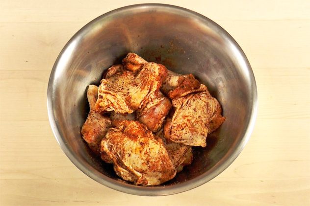 Mix the chicken rub in a small bowl. Rub the chicken with the spice mix until well covered.
