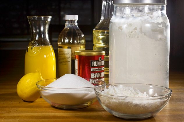 Place flour and baking powder In a mixer bowl with beater and stir. Increase speed and add all other dough ingredients. Knead only until a dough is formed. Let rest for 30 minutes.